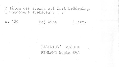 //// 0 låtom oss sverja ett fast brödralag, //// 1 ungdomens sveklösa • ? . //// ¦ //// s. 139 Maj Wisa 1 str. //// f ¦ //// LASENIUS' VISBOK FINLAND kopia SVA //// j ////