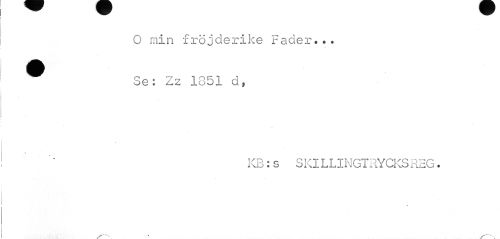//// O min fröjderike Fader... ^ Se: Zz 1851 d, //// « //// '' KB: s SKILLINGTRYCKSREG. //// s-^ 1 v ////