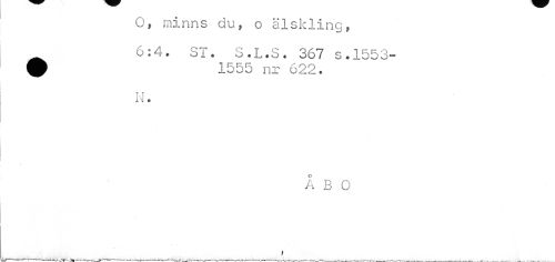 //// O, minns du, o älskling, //// 6:4. ST. S.L.S. 367 s.1553-9 1555 nr 622. //// N. //// ÅBO //// t ////