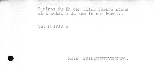 //// r» " //// O minns du än den allra första stund då i butik n du kom in som kund... //// * //// Se: N 1910 a //// v . //// Q KB:s SKlLLINGTRYCKSREG. ////