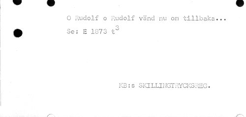 //// O Rudolf o Rudolf vänd nu om tillbaka... 0 Se: E 1873 t3 //// KB:s SKILLINGTRYCKSREG• ////