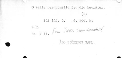 //// O sälla barndomstid jag dig begråter. //// (R) //// SLS 126, 5. R6, 199, b. No Y 11. //// ^ ÅBO SJÖBERGS SAML. ////