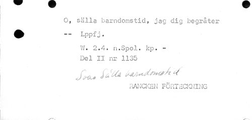 //// O, sälla barndomstid, jag dig begråter //// W. 2.4. n.Spol. kp. -Del II nr 1135 //// RANCKEN FÖRTECKNING ////