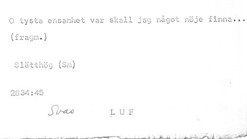 //// O tysta ensamhet var skall jag något nöje finna... (fragm.) //// Slätthög (Sm) //// « //// 28 34:45 //// Sl^o L U F //// ¦ • . rÄ^iÄ ___-V* ä 4 åL \ . k^ kJi.* /-n i _ ////