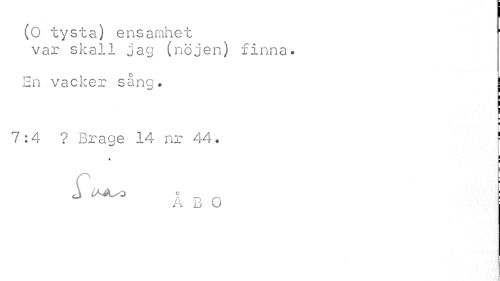 //// (O tysta) ensamhet var skall jag (nöjen) finna. //// En vacker sång. 7:4 ? Brage 14 nr 44. ! //// ÅBO ////