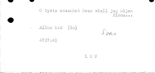 //// O tysta ensamhet hvar skall jag nöjen //// finna... //// Allbo h:d (Sm) //// -> IM/o //// 4737:41 //// LUF ////