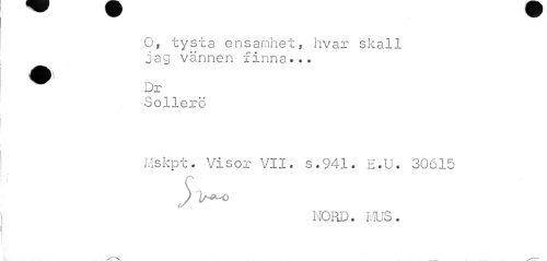 //// O, tysta ensamhet, hvar skall jag vännen finna... //// w Dr //// Sollerö //// Mskpt. Visor VII. s.941. E.U. 30615 //// J) //// NORD. i.US. ////