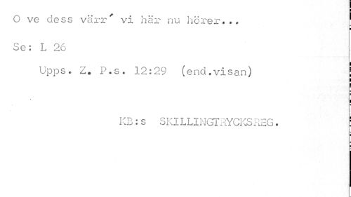 //// O ve dess varr* vi här nu hörer.., j //// ¦ //// Se: L 26 //// , I //// Upps. Z* P.s. 12:29 (end.visan) j //// i ¦ //// KB:s SKILLINGTRYCKSIIEG. ! //// i ¦ //// i ////