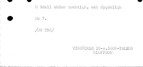 //// O ädell skönn tuchtigh, och dygdeligh /DV 258/ //// VISBÖCKER 15-o.1600-TALENS //// CLUFFSON ////