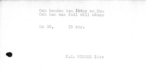 //// - . i i r. - • \ - //// ¦ //// i » : - -- • - < >;'•,•»•-Och bonden han åtthe en Oxe //// Och han war full wäll wåxen Nr 30, 15 str. //// K.B. VISBOK 16:o ////