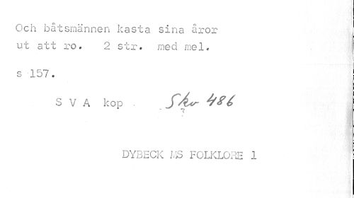 //// Och båtsmännen kasta sina åror ut att ro. 2 str. med mel. //// s 157. //// SVA kop . yÅv- //// v //// DYBECK MS FOLKLORE 1 j ////