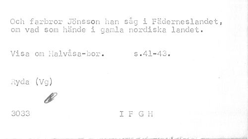 //// Och farbror Jönsson han såg i Fäderneslandet, om vad som hände i gamla nordiska landet. //// Visa om Halvåsa-bor. s.41-43. //// « //// Ryda (Vg) //// 3033 I F G H //// • * . ijgCiÄ t '•'»ivi. ¦¦ /H''" f.v -A ¦'¦'¦V'1, .VArare-J ////