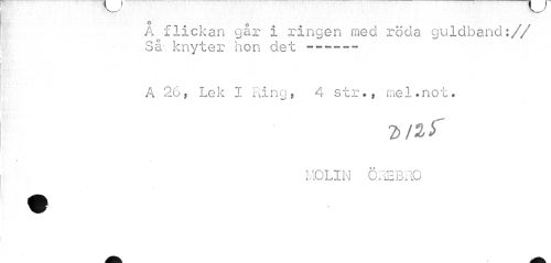 //// o //// A flickan går i ringen med röda guldband:// //// ö //// Sä- knyter hon det---- - //// A 26, Lek I Ring, 4 str., mel.not. //// • ! \ ^ • //// v'» //// 2>/2<f //// i //// MOLIN ÖPiEBRO ////
