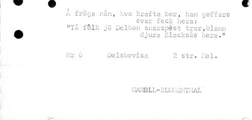 //// o ä é 0 //// A fräga nan, hvo krafta bor, han goffars //// svar feck liera: "Tå folk jo Delbon snarspest tror,blann Q djura Blacksås bera*11 //// Nr 6 DeIsbevisa 2 str. Mel. //// GAWDLL-BLUMENTHAL" //// ___ ////