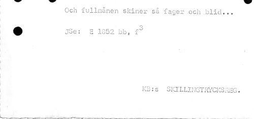 //// Och fullmånen skiner så fager och blid... % jSe; E 1352 bb, fJ //// «' # //// i //// KB:s SKILLINGTRYCKSREG. //// » ////