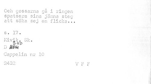 //// Och gossarna gå i ringen spatsera sina jämna steg att söka sej en flicka... //// s . 17 • Kivik, sk. //// d km //// I //// Cappelin nr 10 //// 2432 V F F | //// ' v ' ////