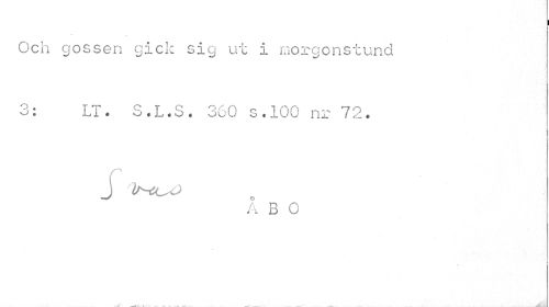 //// Och gossen gick sig ut i morgonstund //// 3: LT. S.L.S. 360 s.100 nr 72. //// j ^^ //// A B O ////