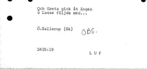 //// Och Greta gick åt ängen o Lasse följde med... //// Ö.Sallerup (Sk) & /if> //// OP^' //// 2435:19 //// L U F ////