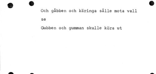 //// Och gåbben och käringa sålle mota vall se //// Gubben och gumman skulle köra ut ////