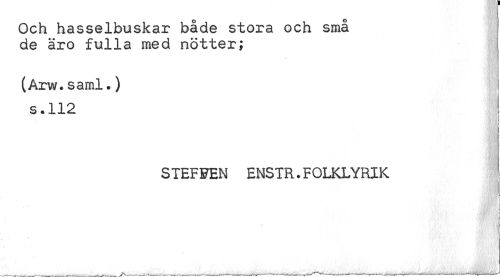 //// Och hasselbiaskar både stora och små de äro fulla med nötter; //// (Arw.saml.) s.112 //// i //// ' I [ //// STEFFEN ENSTR.FOLKLYRIK //// ; //// /'jjfyfr*- " ijj | ////