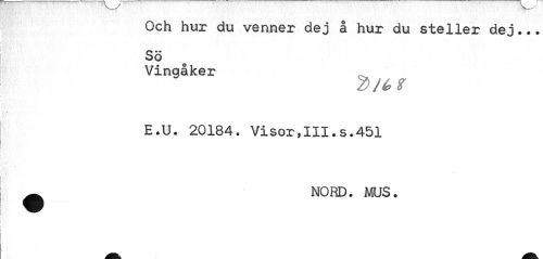 //// Och hur du venner dej å hur du steller dej... Sö //// Vingåker //// E.U. 20184. Visor,III.s.451 ^ NORD. MUS. ////