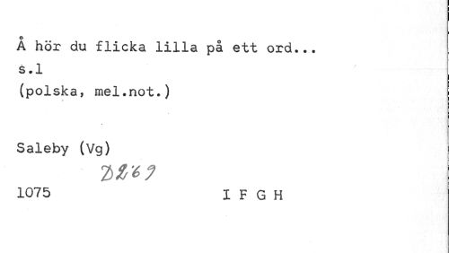 //// I //// o //// A hör öxi flicka lilla pa ett ord... s.l //// i //// (polska, mel.not.) Saleby (Vg) //// 1075 I F G H ////