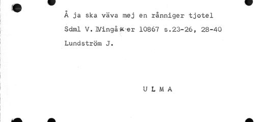 //// A ja ska väva mej en rånniger tjotel Sdml V. IVingå K er 10867 s.23-26, 28-40 Lundström J. //// U L M A ////
