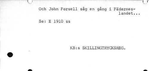 //// Och John Forsell såg en gång i Fäderneslandet ... //// Se: E 1910 ss //// KB:s SKILLINGTRYCKSREG. ////