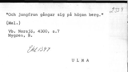 //// "Och jungfrun gangar sig pa högan berg." (Mel.) //// Vb. Norsjö, 4300, s.7 Nygren, B. //// U L M A ////