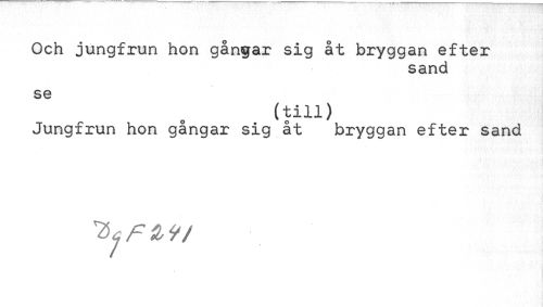 //// Och jungfrun hon gångar sig åt bryggan efter //// sand //// se //// (till) //// Jungfrun hon gångar sig åt bryggan efter sand ////