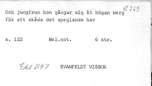 //// ,. _ , . 7/ a //// Och jungfrun hon gångar sig åt högan berg v ' för att skåda det speglande hav //// ! //// s. 122 Mel.not, 6 str. //// £ 17 SVANFELDT VISBOK ////