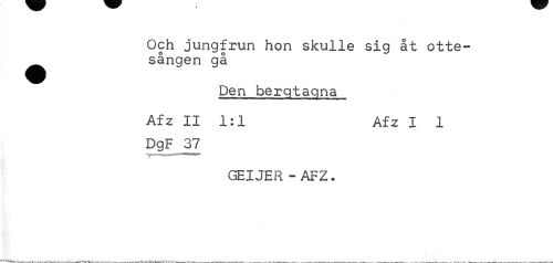 //// Och jungfrun hon skulle sig åt otte-^^ sången gå //// Den bergtaqna //// Af z II 1:1 Afz I 1 //// DgF 37 //// GEIJER - AFZ. ////