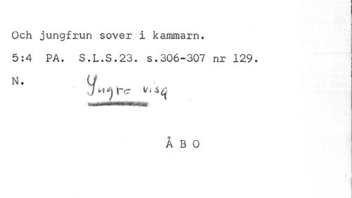 //// Och jungfrun sover i kammarn. //// 5:4 PA. S.L.S.23. s.306-307 nr 129. N. U //// ' rc //// m w -v. //// ÅBO ////