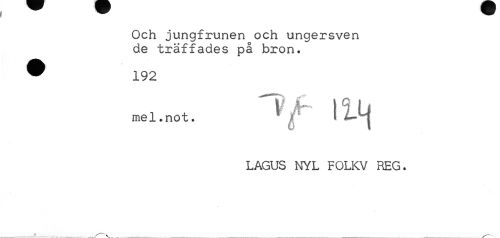 //// Och jungfrunen och ungersven de träffades på bron. //// ® 192 //// mel. no t. ^ i1 ^ //// LAGUS NYL FOLKV REG. ////