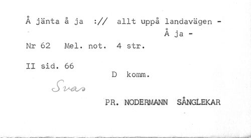 //// Å jänta å ja :// allt uppå landavägen - //// Å ja - //// Nr 62 Mel. not. 4 str. II sid. 66 //// D komm. PR. NODERMANN SÅNGLEKAR ////