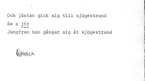 //// 1 //// Och jäntan gick sig till sjögestrand Se o jfr //// ¦ //// Jungfrun hon gångar sig åt sjögestrand ////