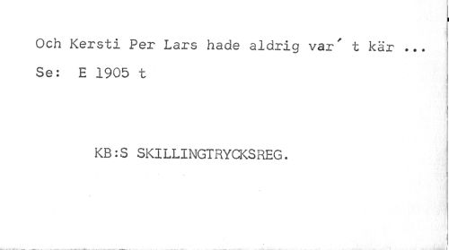 //// . j, //// Och Kersti Per Lars hade aldrig var' t kär ... Se: E 1905 t //// KB:S SKILLINGTRYCKSREG. //// ___ ^ .. ...^ . . _ . ' .. ... I ////