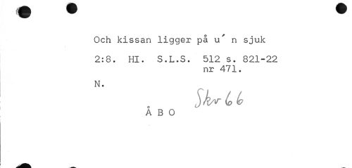 //// Och kissan ligger på u' n sjuk //// 2:8. Hl. S.L.S. 512 s. 821-22 //// nr 471. //// N. //// )ksrlo(o //// A B O ////