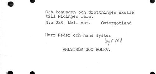//// Och konungen och drottningen skulle till Nidingen fara, //// N:o 238 Mel. not. Östergötland Herr Peder och hans syster //// AHLSTRÖM 300 EÖLKV. //// iJM ^ ^ ^ ^ ^ ////