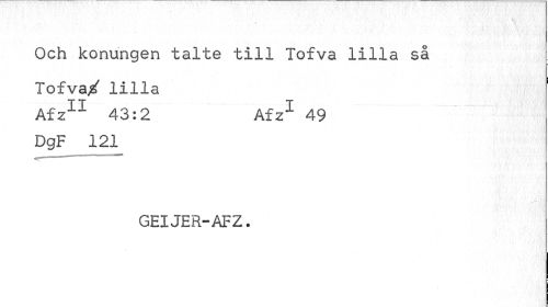 //// Och konungen talte till Tofva lilla så Tofva/ lilla //// Afz11 43:2 Afz1 49 //// DgF 121 //// GEIJER-AFZ. ////