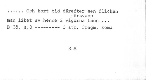 //// I //// ... Och kort tid därefter sen flickan //// försvann //// man liket av henne i vågorna fann ... B 35, s.3 ----3 str. fragm. koma //// R A //// * ~ ... . ' Jdftl //// - - - _ ' i .mU ////