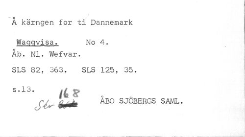//// Å kärngen for ti Dannemark //// Wagqvisa. No 4. //// Åb. NI. Wefvar. //// SLS 82, 363. SLS 125, 35. //// S . 1 3 . * i //// r/ * ÅBO SJÖBERGS SAML. ////