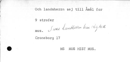 //// Och landsherrn sej till Åmål for 9 strofer //// / ^ k<u rylcj kV, //// mus. cy / Croneborg 17 //// 0 MS MUS HIST MUS. ////