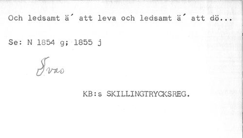 //// Och ledsamt a' att leva och ledsamt ä' att dö... Se: N 1854 g; 1855 j //// KB:s SKILLINGTRYCKSREG. ////