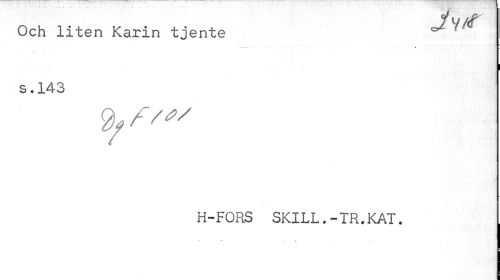 //// 1 v /<f //// Och liten Karin tjente ^ ' //// s.143 //// % f" //// H-FORS SKILL.-TR.KAT. ////