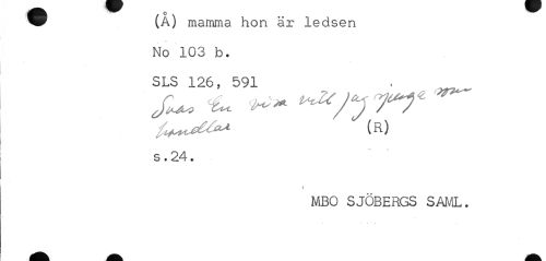 //// w (Ä) mamma hon är ledsen //// No 103 b. SLS 126, 591 //// JU* ^ ^yyy^ ^ //// (R) //// s. 24. //// i //// MBO SJÖBERGS SAML. ////