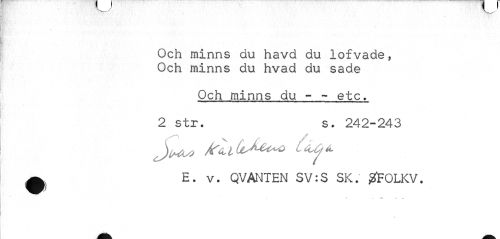//// y - fv //// Och minns du havd du lofvade, Och minns du hvad du sade //// Och minns du - - etc. //// 2 str. s. 242-243 //// Cm*. //// ^ E. v. QVANTEN SV:S SK. #FOLKV. //// •v r~ ¦¦> //// i ////