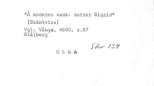 //// o //// !,A moderen sade: dotter Sigrid" (Skämtvisa) //// Vgl. Vånga, 4690, s.57 Stålberg //// /3 y //// U L M A //// / . « • ////