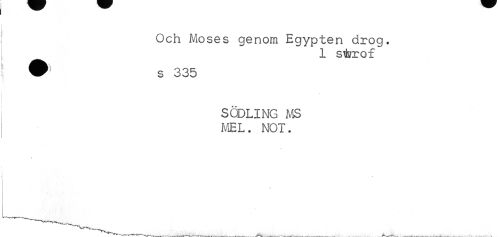 //// Och Moses genom Egypten drog. ^ 1 stärof //// SODLING MS MEL. NOT. //// \ ////