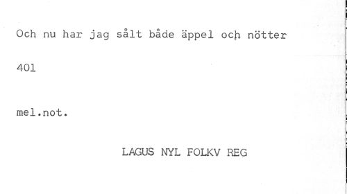 //// i ¦ //// » i //// Och nu har jag sålt både äppel och nötter //// 401 ! //// i //// i //// mel.not. //// i //// LAGUS NYL FOLKV REG ////
